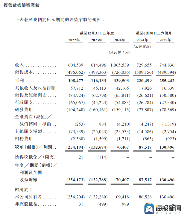 从招股书披露的核心数据看,极飞科技的财务数据也成为其二次闯关的底气。数据显示,公司营收从2022年的6.05亿元稳步增长至2024年的10.66亿元,2025年上半年更是以7.45亿元营收实现1.30亿元净利润,较2024年全年0.70亿元净利大幅增长85.7%。