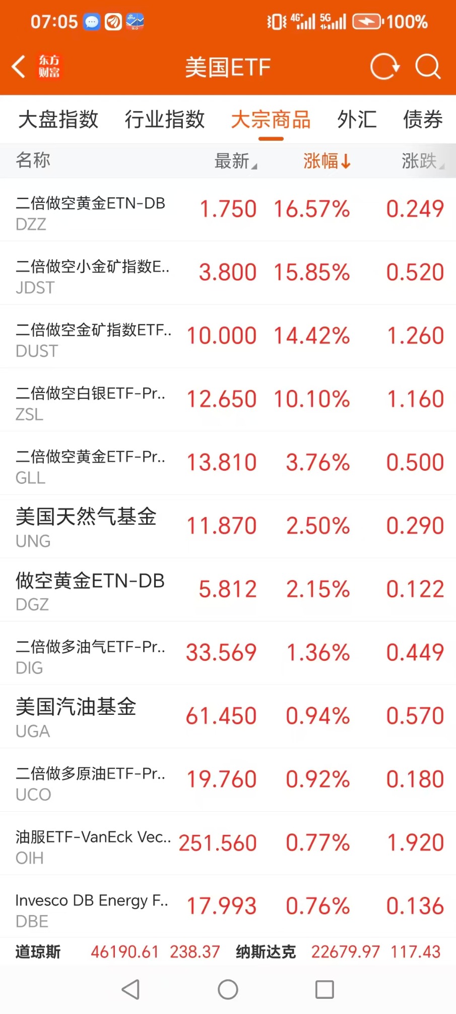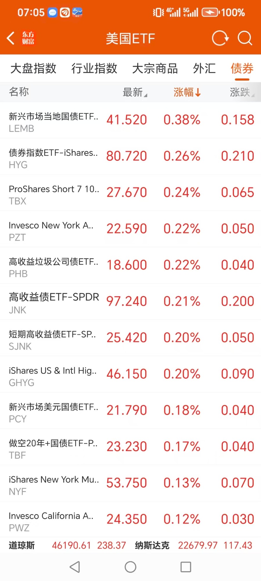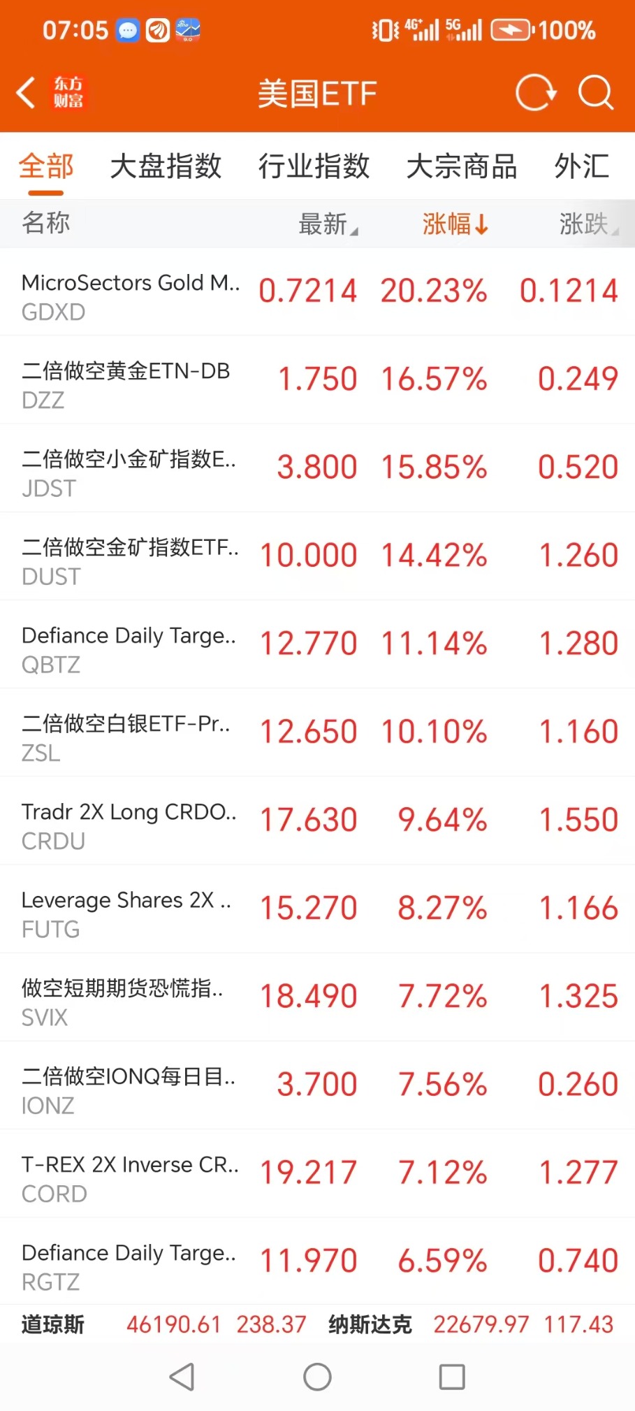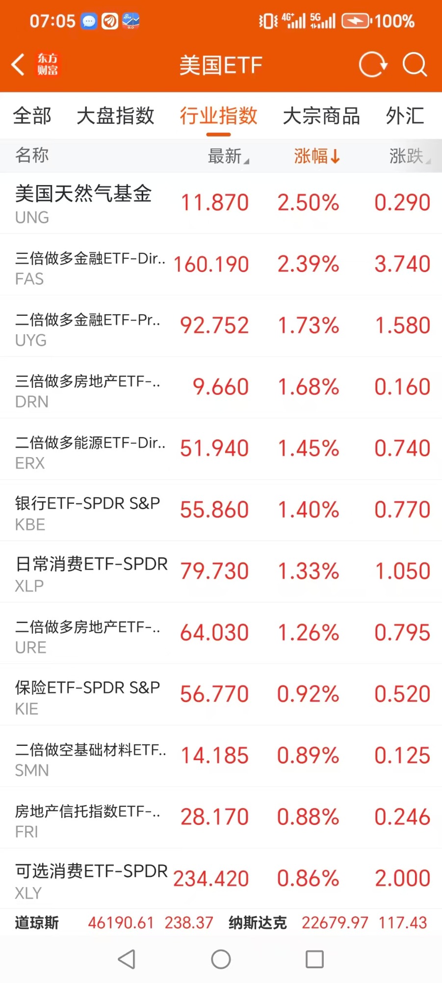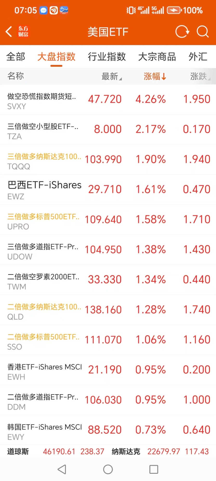 美股大型指数ETF升幅榜Top5