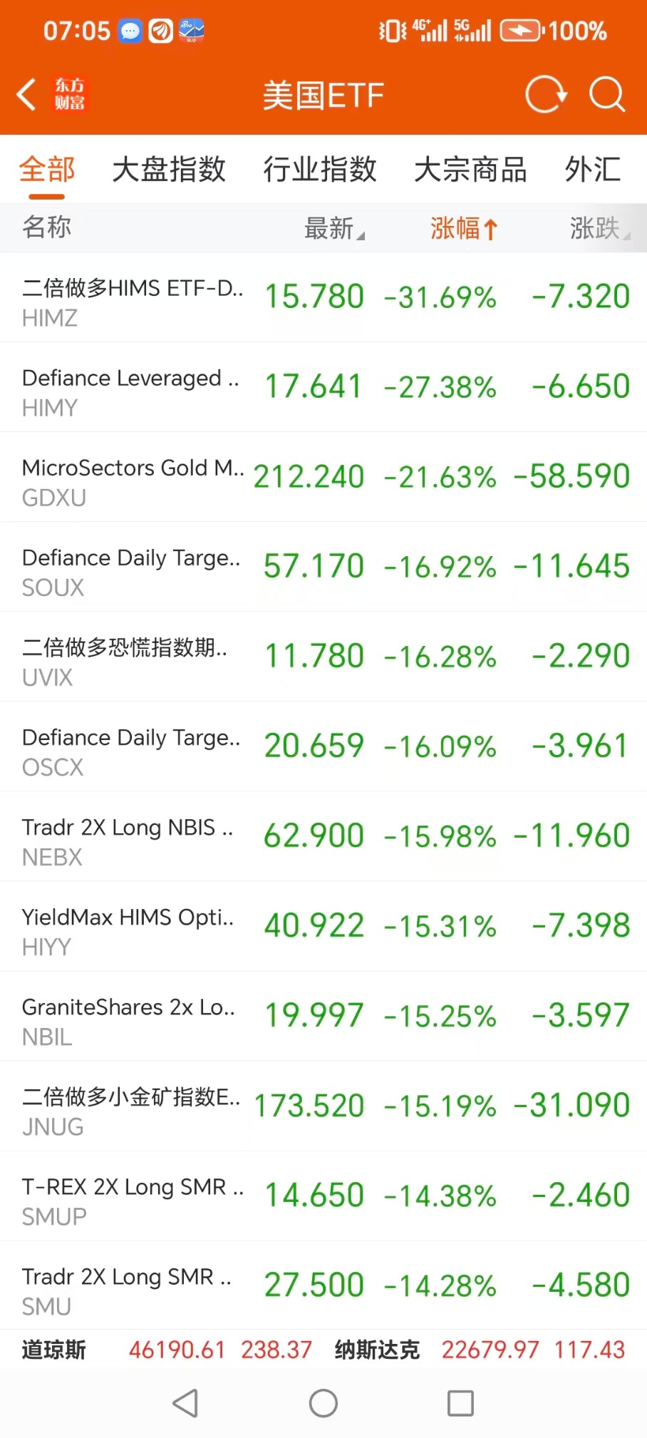 美股ETF跌幅榜Top5