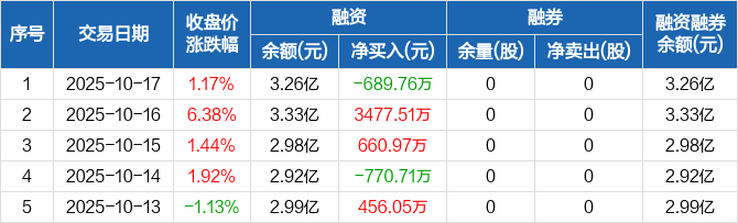 海汽集团:融资净偿还689.76万元,融资余额3.26亿元(10-17)