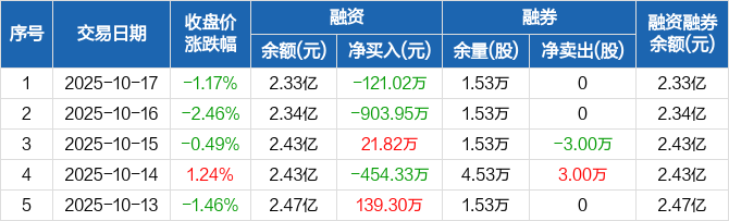 翠微股份:融资净偿还121.02万元,融资余额2.33亿元(10-17)