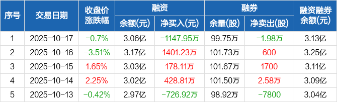 旗滨集团:融资净偿还1147.95万元,融资余额3.06亿元(10-17)