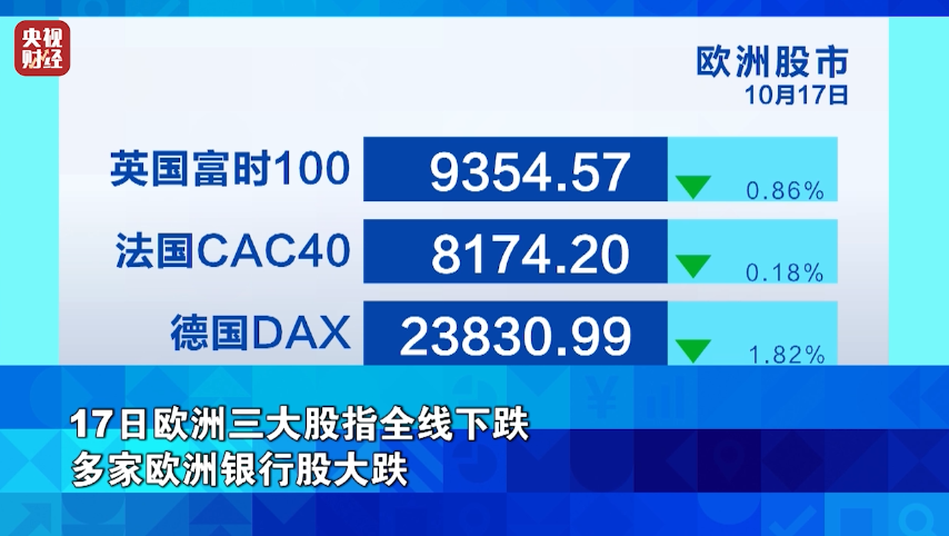 17日欧洲三大股指全线下跌多家欧洲银行股大跌