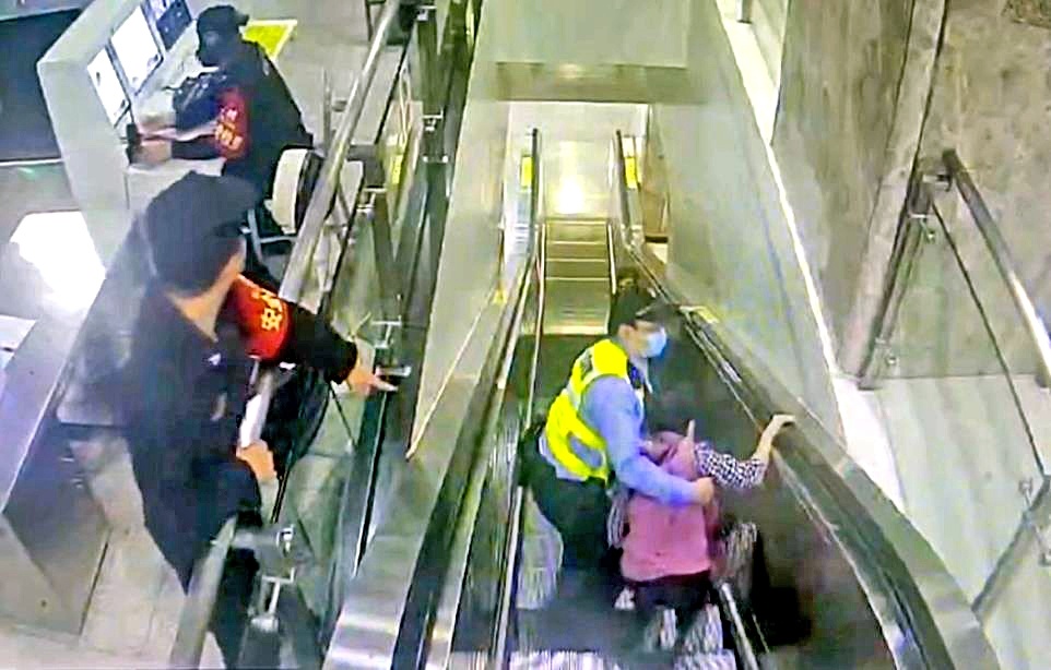 婆婆没站稳 向后摔倒在站台扶梯上 辅警飞身跨栏 5秒救下老人