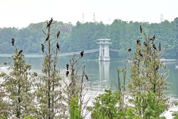 连日来,武汉东湖落雁景区的走人棋鸟岛迎来一批新“居民”。10月17日,记者现场看到,小岛的树梢上停满通体乌黑的鸬鹚。用无人机从高空俯瞰,翠绿的树林中间,有好几片白色,像是被白雪覆盖。实际上,这是鸬鹚的排泄物导致的。据了解,每年10月至11月,鸬鹚中的一些冬候鸟种群,会不远万里来到我国南方等地越冬,来年3月至4月离去。由于东湖生态环境持续向好,部分鸬鹚选择在湖中小岛落脚,每年最多时有近500只。