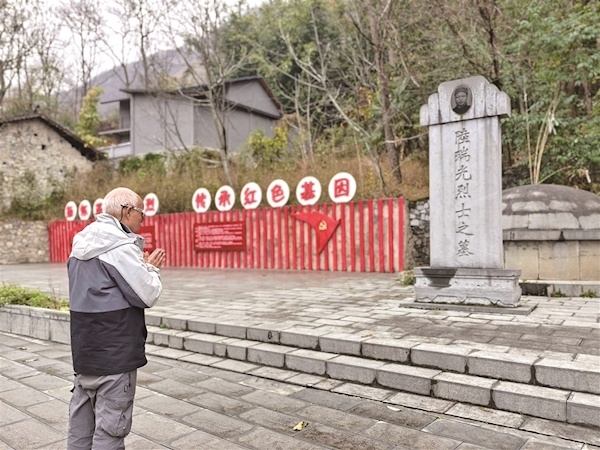 郑镇炎在陆瑞光烈士墓前祭拜受访者供图