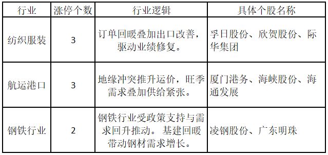 从行业特征来看,周五的涨停板个股中,纺织服装、航运港口、钢铁行业的个股最多。