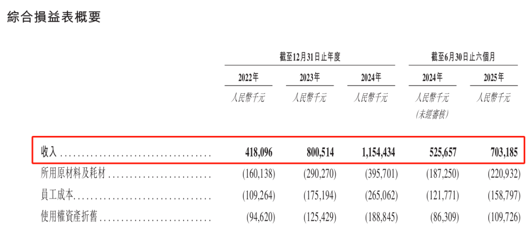 2022年、2023年、2024年以及2025年上半年,公司分别实现营业收入约4.18亿元、8.01亿元、11.54亿元以及7.03亿元,分别实现净利润约-3597.3万元、4591.4万元、6070万元和4183.4万元。