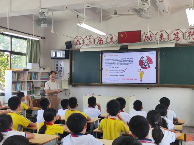 2025年秋季学期,东方财富证券投资者教育基地与梅州市东山学校附属小学再度携手,联合开展特色财商教育系列课程,旨在通过贴近生活的品牌案例,引导学生理解商业运行逻辑,提升财商素养。2025年9月12日上午,梅州新中路营业部讲师团走进602班,为该班49名同学带来一场以“吃玩学财商KFC”为主题的沉浸式课堂。