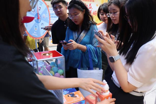 9月19日,在上海市证监局、上海证券交易所、上海市证券同业公会等单位的联合指导下,东方财富证券投资者教育基地参与了花木时光里“投教集市”宣传活动。现场设置“防非扭蛋抽题”“东财悦跑”线上游戏、“防非拼图”等互动项目,参与者通关即可获得“东财宝宝”系列文创礼品。活动吸引超300名市民踊跃参与,以寓教于乐的形式轻松学习了防非知识。
