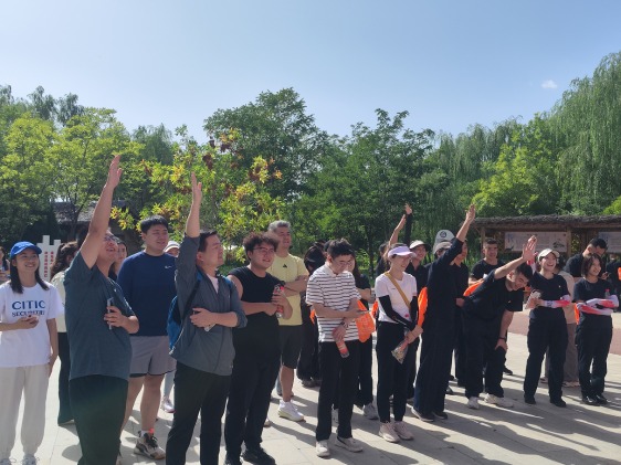 15时40分,所有选手冲线后重新集结,按所处行业自然分成“警官蓝”“证券橙”两个小队,进入“终极答题PK”环节。主持人宣读15道抢答题——前10题防非、后5题党建,抢答者踊跃举手,积极抢答。
