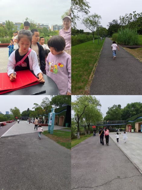 上午9点30分,活动正式开始。所有的参赛小朋友及家长在中江公园内圈开始了他们环绕公园两圈的步行之旅,工作人员带领大家按照指示牌的指引前行,在欣赏秋天美景的同时,也享受了运动带来的乐趣。在活动的第一圈和第二圈结束时,参与者们分别到达起点处,在中江书苑门口的打卡点进行了互动答题。