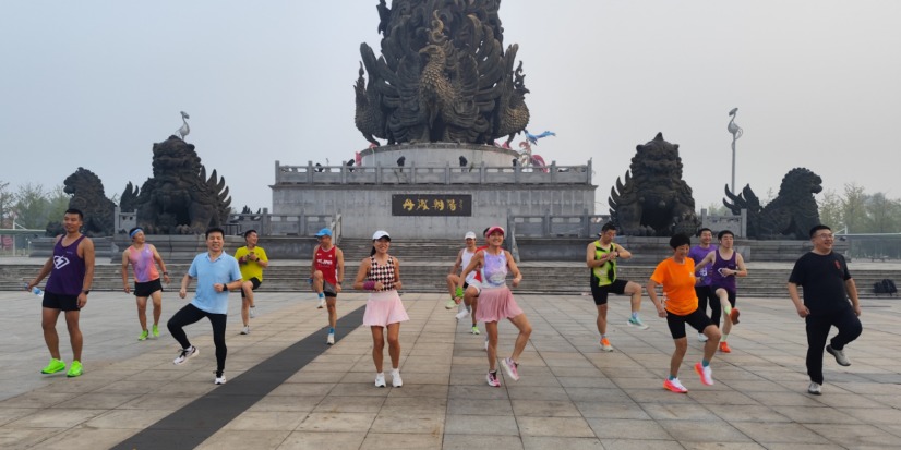 上午八点半,阳光柔和地洒在唐山南湖丹凤朝阳广场,选手们开启活力满满地热身运动。在专业跑团领操人员的带领下,参赛选手们有节奏地做着高抬腿、手臂伸展等动作,充分活动着筋骨。每一个动作都透着对即将到来的健康跑活动的期待,参赛选手们充满激情活力的气息与身后的雕塑相映成趣,宛如一幅动感十足的生活画卷。