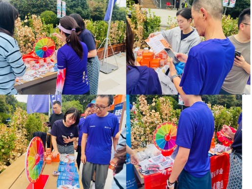 跑步活动结束后,工作人员为完成参赛者发放完赛徽章及活动纪念品,而最受瞩目的当属“防非大转盘游戏”互动游戏。营业部工作人员围绕非法证券期货活动的特点、套路和防范技巧进行了趣味问答,只要答对题目就可以转动转盘,有机会赢取东财宝宝防非主题文创产品、定制防晒冰袖等精美纪念品。整场宣传活动在轻松有趣的氛围中推进,让参赛者享受到防非互动游戏的乐趣,帮助投资者在轻松氛围中掌握关键知识、提升自我保护意识。现场群众踊跃参与,气氛活跃,在互动竞答中进一步巩固和加深了对防非知识的理解,有效提升了风险识别和防范能力。