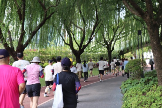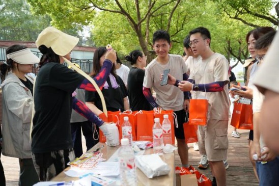 上午九时十分,三公里健康跑正式拉开帷幕。参与者们的身影中,既有步伐稳健的资深跑者,也有相互鼓劲的亲子组合,还有并肩前行的同事伙伴。江风裹挟着清爽拂面而来,将秋日的暖意揉进阳光里,洒在每一位奔跑者的肩头。脚下的跑道上,脚步声铿锵如鼓点,奏响向前的节奏;沿途的欢笑声清脆响亮,传递着运动的喜悦;林间的鸟鸣婉转悦耳,为这场活力奔赴伴奏。这一路的奔跑,不单单是对体能发起的挑战,更是一场向着健康生活的热烈奔赴。每一位参与者都用坚实有力的脚步,生动诠释着积极向上的磅礴力量。终点线前,当一位位参与者身影出现,等候的工作人员鼓掌欢呼,并为参与者们送上补给品与冰凉毯,在秋日的烈日下,用这份贴心关怀,为参与者们带来凉爽与慰藉。