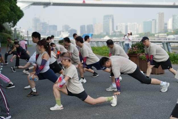 活动当日上午八时四十分,参与者陆续到场签到。工作人员为大家分发了防非宣传防晒袖套和脸贴。签到结束后,所有参与者在黄浦江前集合,拍摄了充满活力的集体合照,并齐声高喊“警惕股市黑嘴远离非法荐股”“防非健康非跑不可”的宣传口号,用响亮的声音拉开了活动序幕。随后,在工作人员的带领下,全体参与者共同进行了充分的热身运动,从颈部拉伸到腿部激活,逐步转动关节、伸展四肢,有效唤醒身体机能,为接下来的健康跑做好了充足准备。
