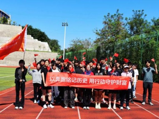 随着发令枪声响起,“以奔跑铭记历史,用行动守护财富”防非健康跑活动正式开跑!参与者们奋勇向前,跑道两旁的金融知识标语与红色文化海报交相辉映,共同构成校园内一道别具一格的风景线。