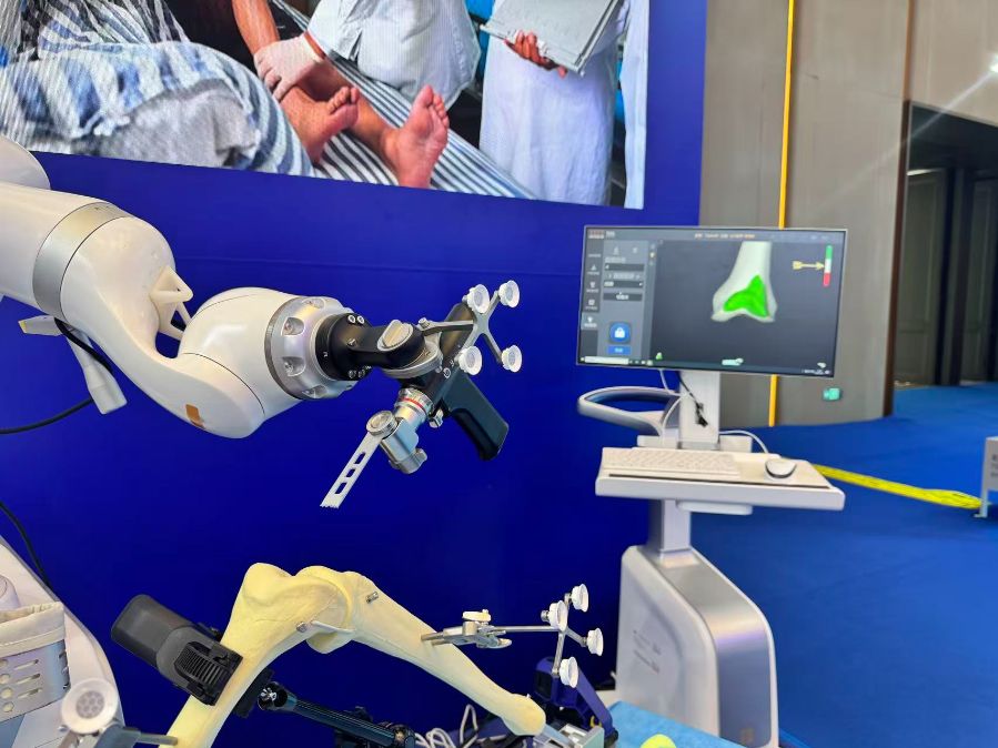 广交会开展三天来,欧洲、中东等身体关节坏死率较高地区的采购商,对该款手术机器人关注度空前高涨,导致工作人员名片在开展首日即被一抢而空。孟李艾俐表示,接下来希望通过“技术出海”与“本地化服务”双轮驱动,让中国手术机器人的创新成果惠及全球患者。