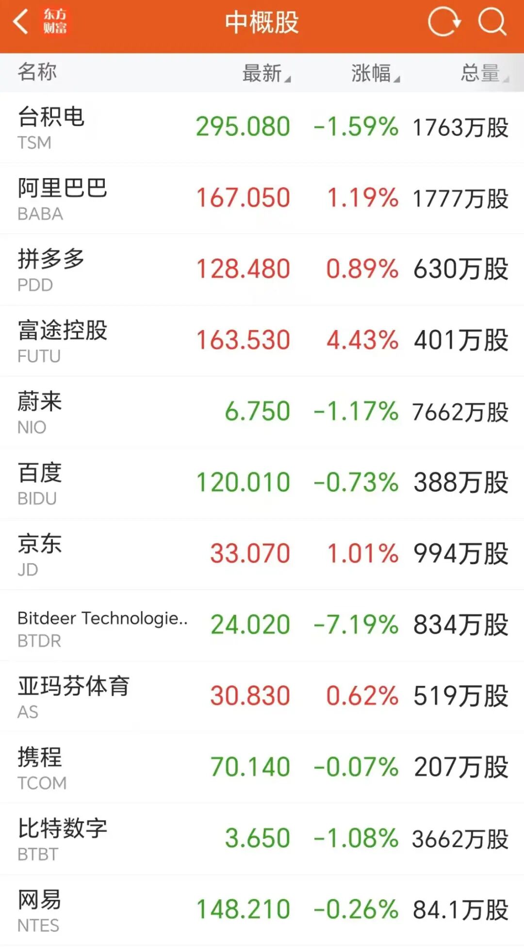 纳斯达克中国金龙指数收跌0.14%,热门中概股涨跌不一,富途控股涨超4%,新东方涨超2%,阿里巴巴、京东涨超1%,知乎、爱奇艺跌超1%,金山云跌超4%。