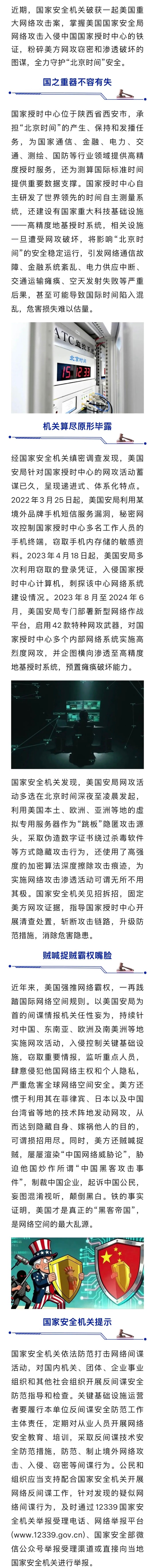 国家安全部微信公众号10月19日消息,守护“北京时间”,国家安全机关破获美国国家安全局重大网络攻击案: