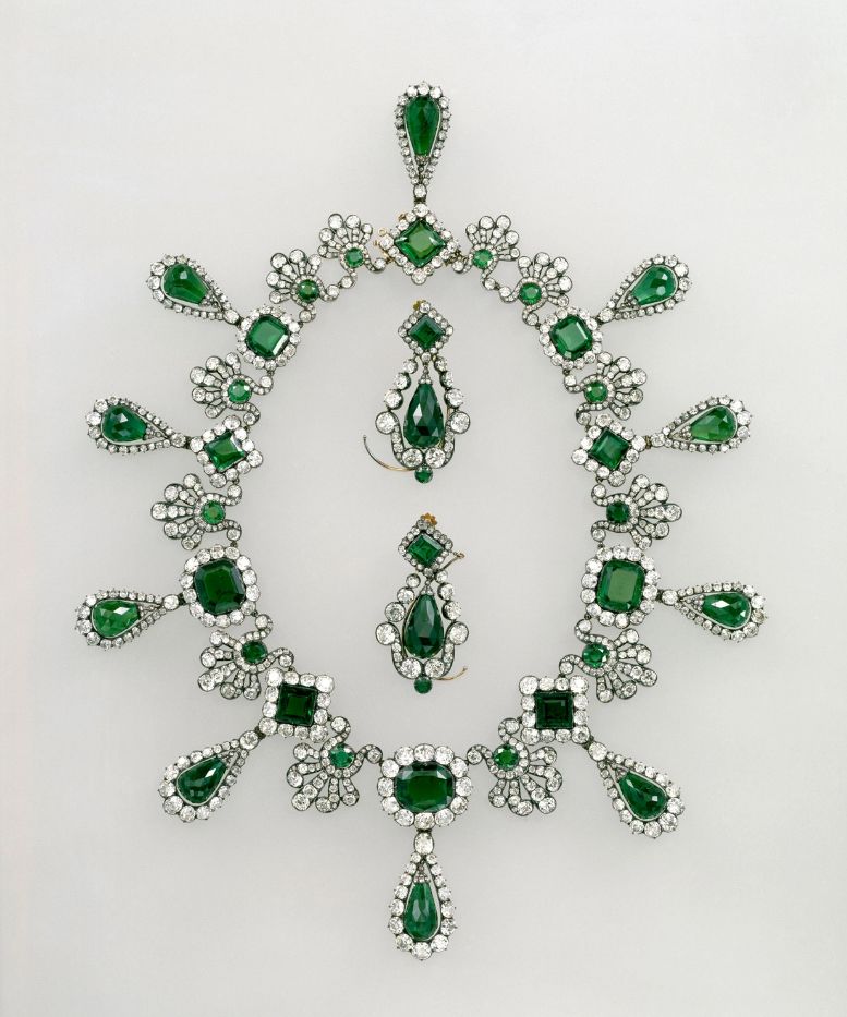 玛丽-路易丝皇后的祖母绿项链和耳环(资料图)。图片来源:卢浮宫博物馆官网