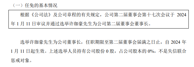 2023年12月,许培新因“个人原因”辞去金新城董事长一职。2024年1月,其子许珈豪被推举接任该重要职务。值得一提的是,许珈豪出生于1999年2月,今年才26岁,本科学历,拥有澳大利亚永久居留权。