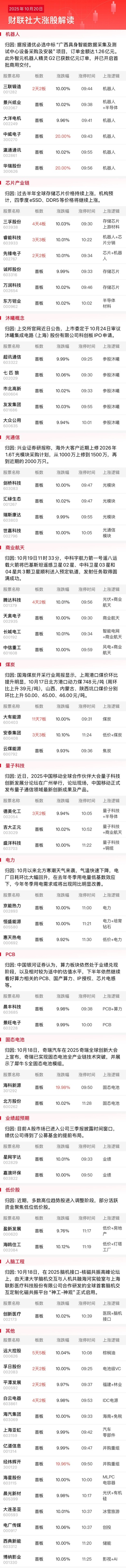 10月20日午间涨停分析