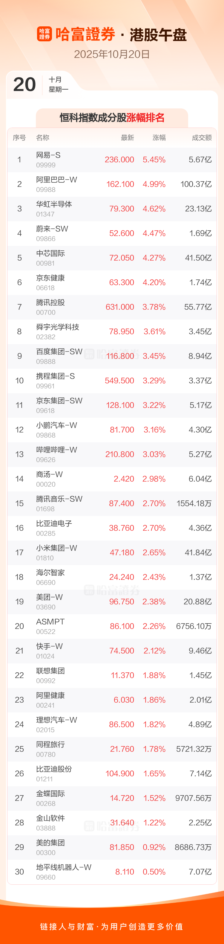 港股午评:恒生指数涨2.41% 恒生科技指数涨3.21%