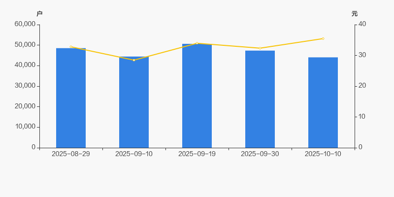 截至2025年10月10日,公司最新总股本为5.82亿股,其中流通股本为3.95亿股。户均持有流通股数量由上期的8352股上升至8975股,户均流通市值31.83万元。