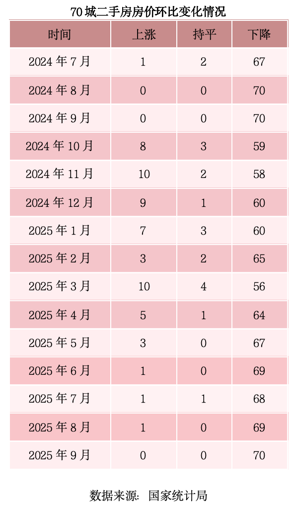 10月20日,国家统计局发布数据显示,9月份,70个大中城市中,各线城市商品住宅销售价格环比下降,同比降幅继续呈收窄态势。