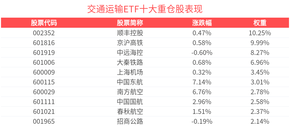 费率方面,交通运输ETF管理费率为0.50%,托管费率为0.10%。