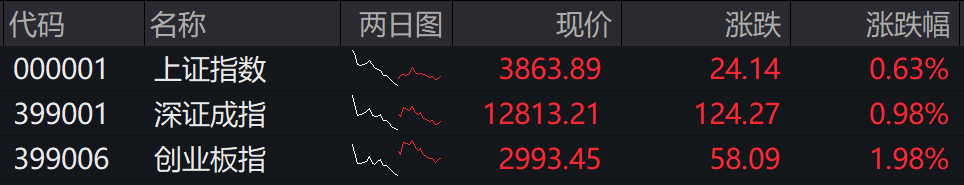 10月20日,A股三大指数集体上涨,截至收盘,上证指数缩量涨0.63%,深成指涨0.98%,创业板指涨1.98%。