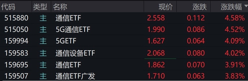 通信概念股早盘走高,5G、通信相关ETF涨约4%