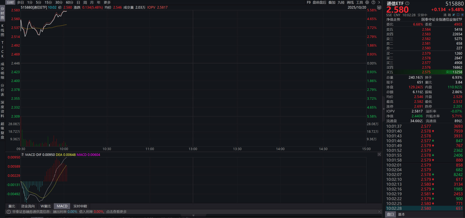 投资主线还得看AI,往后看,在流动性驱动的市场环境下,全球性的AI资本开支浪潮或将带来结构性机会。光模块占比近50%的通信ETF(515880)涨超5%,或可逢低分批布局