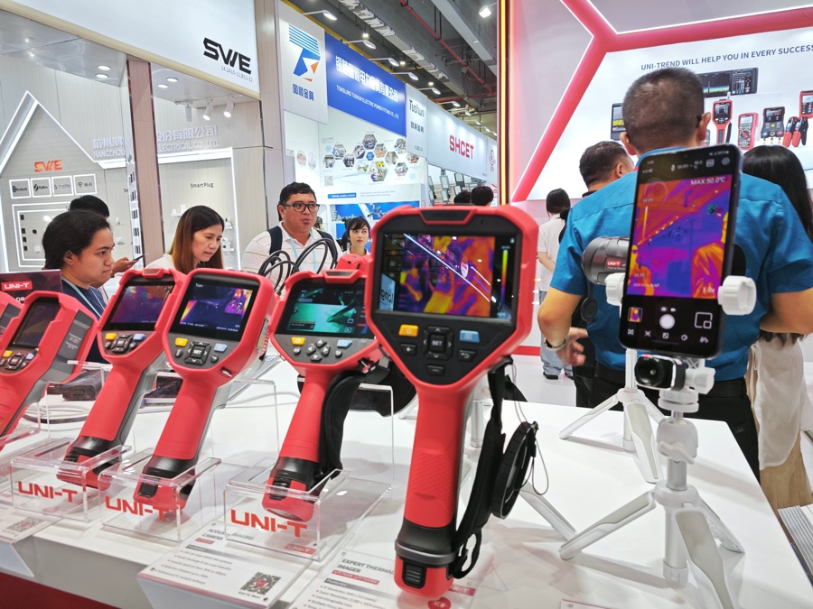 来自优利德科技的新一代智能热成像仪成为境外工业采购商的关注焦点。程浩摄