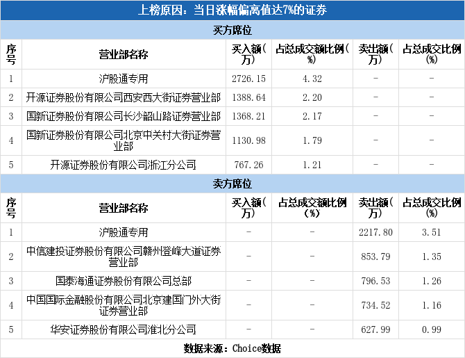 沪股通现身龙虎榜,陕西黑猫涨停(10-20)