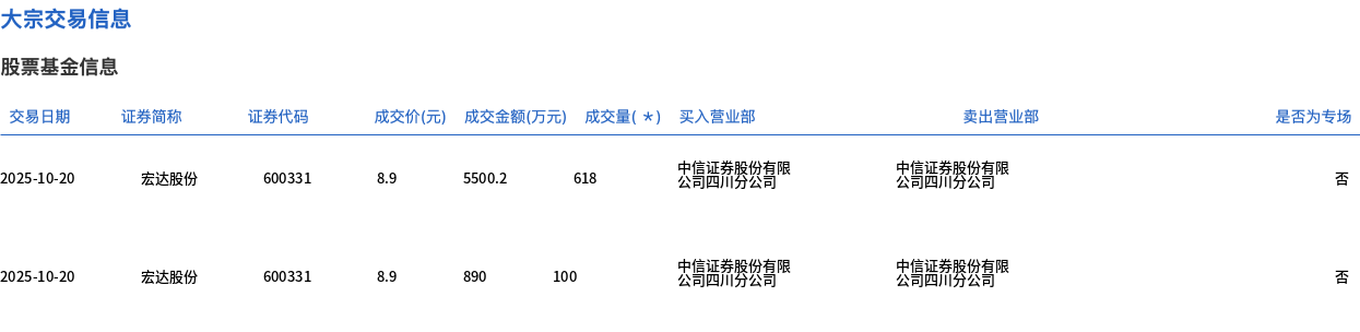 宏达股份今日大宗交易折价成交718万股,成交额6390.2万元