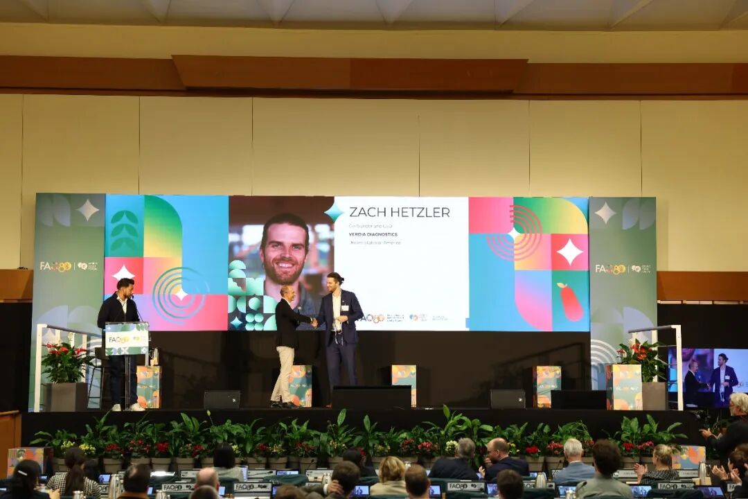 在本届科学与创新论坛上,12支来自世界各国的青年农创客团队带来了其农业科创方案。在经过一轮激烈的角逐后,共有6支队伍晋级决赛,其中包括来自中国的“牧原云计算”和来自美国的“Verdia Diagnostics”团队,这两支队伍此前在2025全球农创客大赛中分别夺得银奖和铜奖,并在拼多多的支持下,首次站上了世界粮食论坛的舞台。