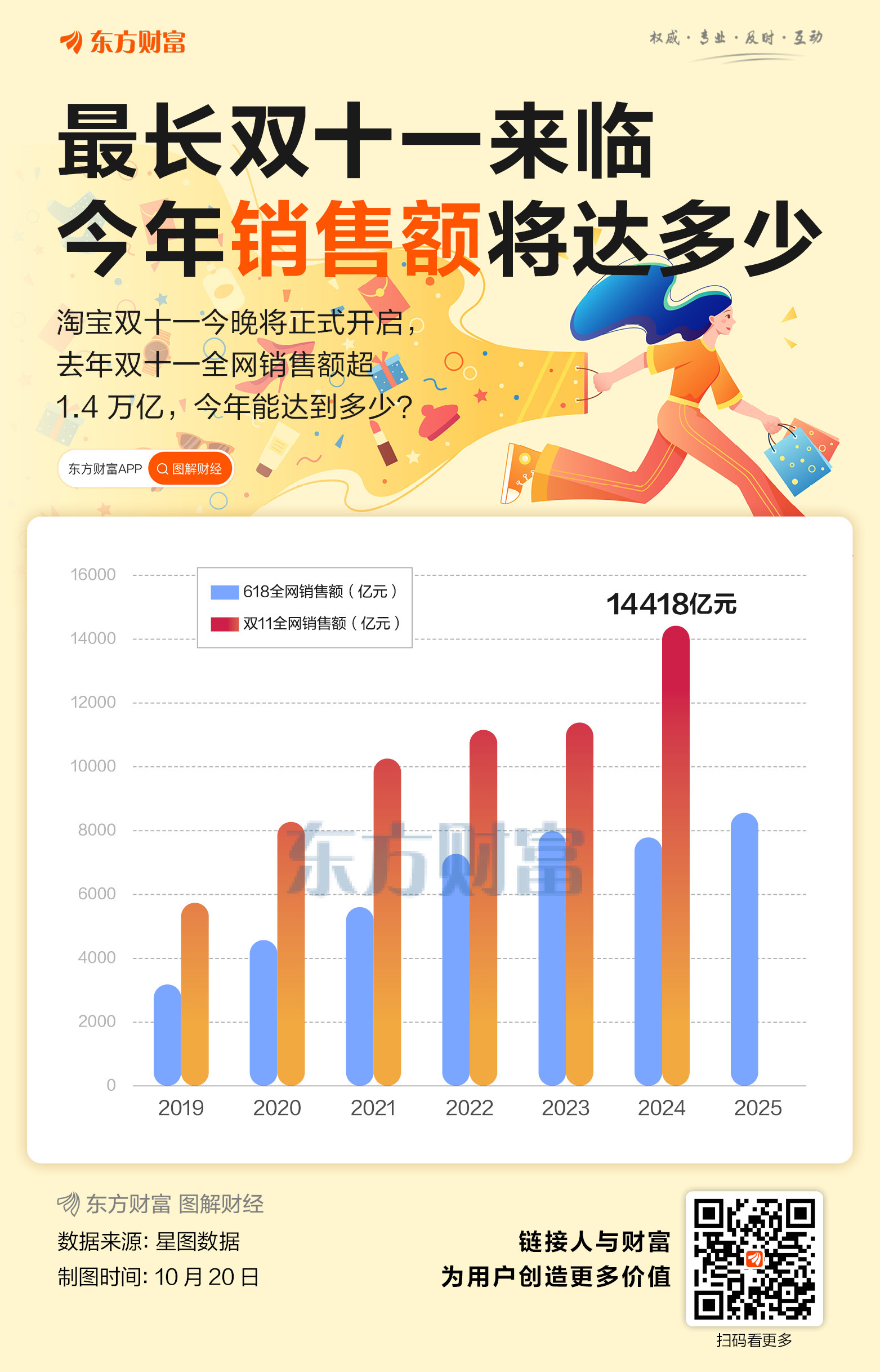 淘宝今晚将正式开启今年的双十一,活动将一直持续到11月14日,如果从10月11日的预热开始算起,今年淘宝双十一将达35天,为史上最长。