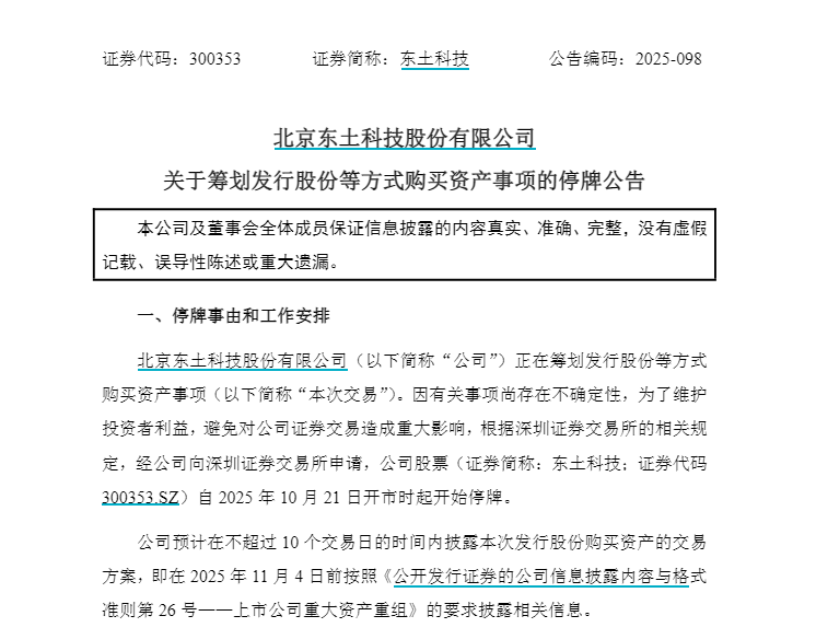 10月20日晚间,东土科技(300353)发布公告称,公司正在筹划以发行股份及支付现金方式购买北京高威科电气技术股份有限公司(简称“高威科”)100%股权,并募集配套资金。公司股票自10月21日开市时起开始停牌。
