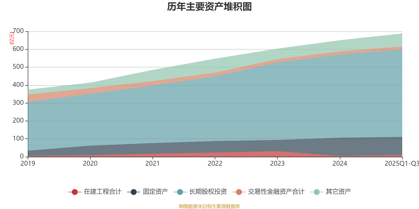 资产重大变化方面,截至2025年三季度末,公司货币资金较上年末增加112.09%,占公司总资产比重上升1.35个百分点;固定资产较上年末减少0.27%,占公司总资产比重下降0.9个百分点;在建工程合计较上年末增加133.56%,占公司总资产比重上升0.72个百分点;长期股权投资较上年末增加4.92%,占公司总资产比重下降0.58个百分点。