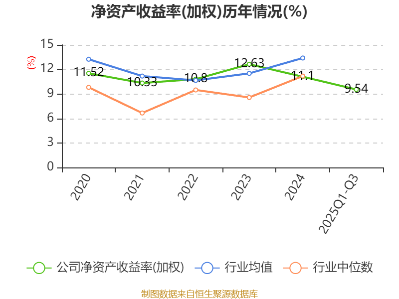 盈利能力方面, 2025年前三季度公司加权平均净资产收益率为9.54%,同比下降1.35个百分点。公司2025年前三季度投入资本回报率为7.42%,较上年同期下降1.02个百分点。
