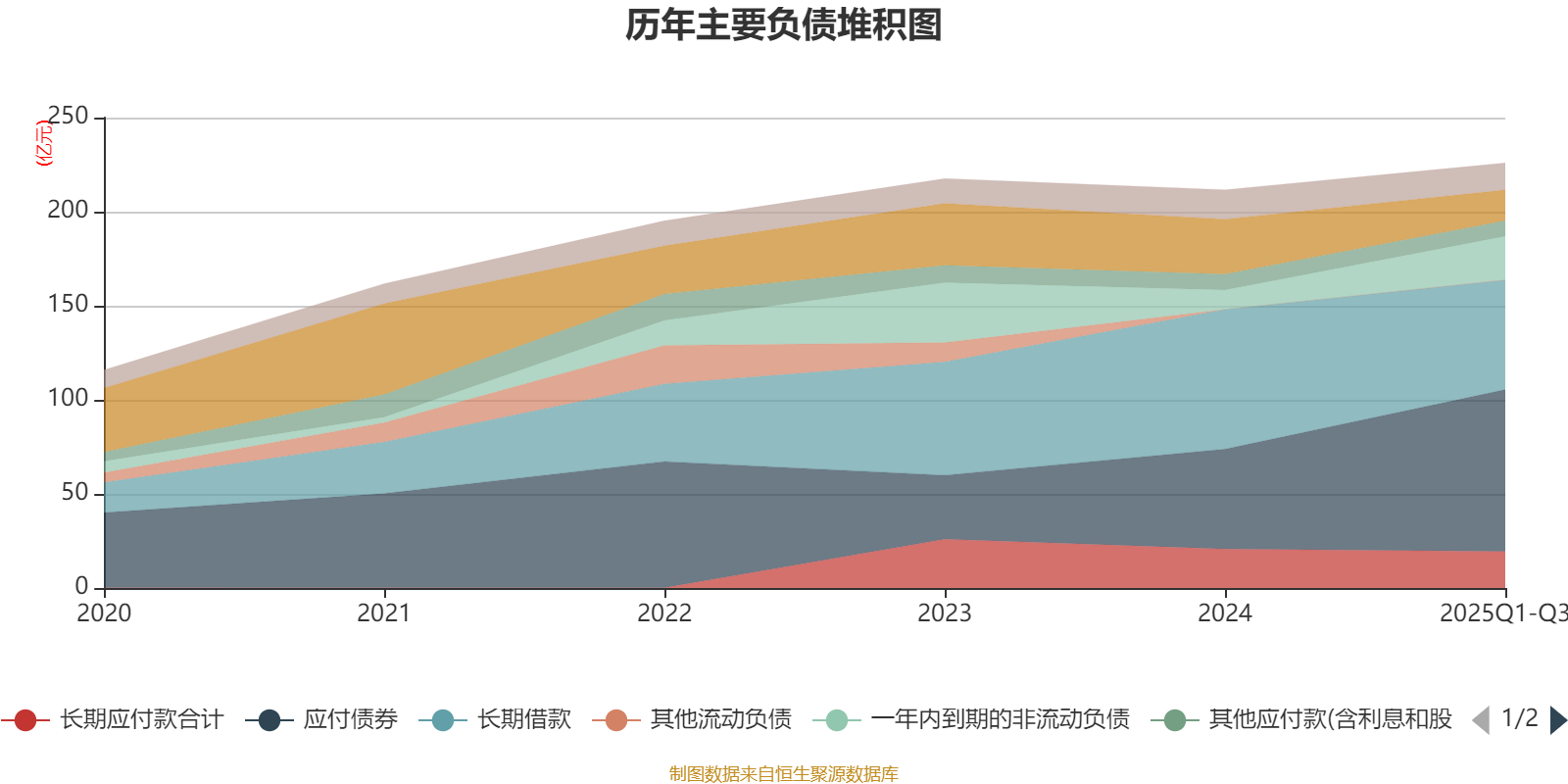 负债重大变化方面,截至2025年三季度末,公司应付债券较上年末增加61.96%,占公司总资产比重上升4.34个百分点;长期借款较上年末减少21.49%,占公司总资产比重下降2.94个百分点;短期借款较上年末减少44.22%,占公司总资产比重下降2.12个百分点;一年内到期的非流动负债较上年末增加126.97%,占公司总资产比重上升1.8个百分点。