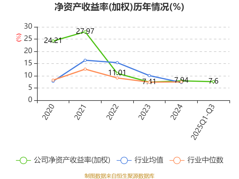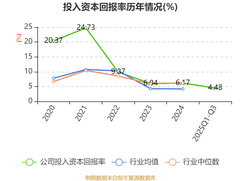 盈利能力方面, 2025年前三季度公司加权平均净资产收益率为7.6%,同比上升0.92个百分点。公司2025年前三季度投入资本回报率为4.48%,较上年同期下降0.45个百分点。