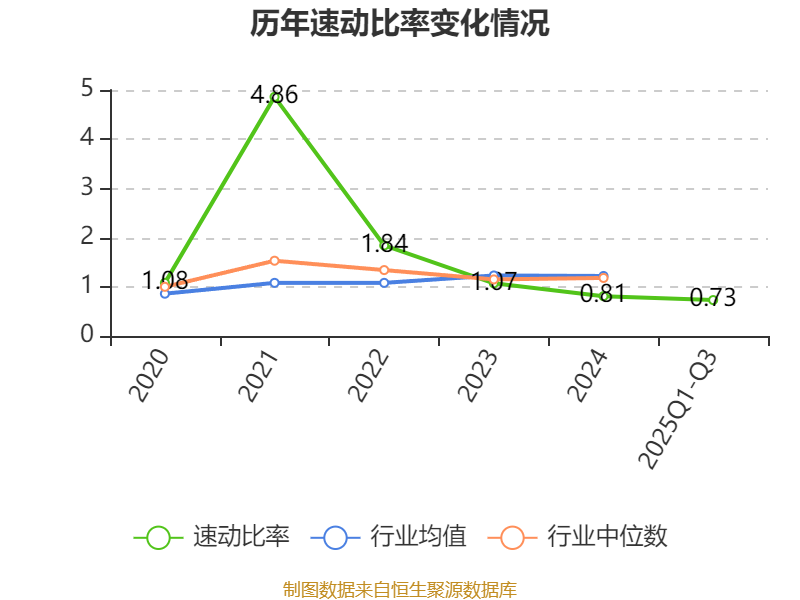 2025年前三季度,公司流动比率为1.2,速动比率为0.73。