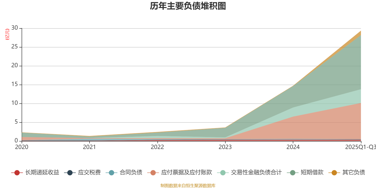 负债重大变化方面,截至2025年三季度末,公司短期借款较上年末增加153.24%,占公司总资产比重上升12.44个百分点;其他应付款(含利息和股利)较上年末增加3380.36%,占公司总资产比重上升1.4个百分点;应付票据及应付账款较上年末增加62.27%,占公司总资产比重上升1.31个百分点;衍生金融负债占公司总资产的0.98%,上年末为0。