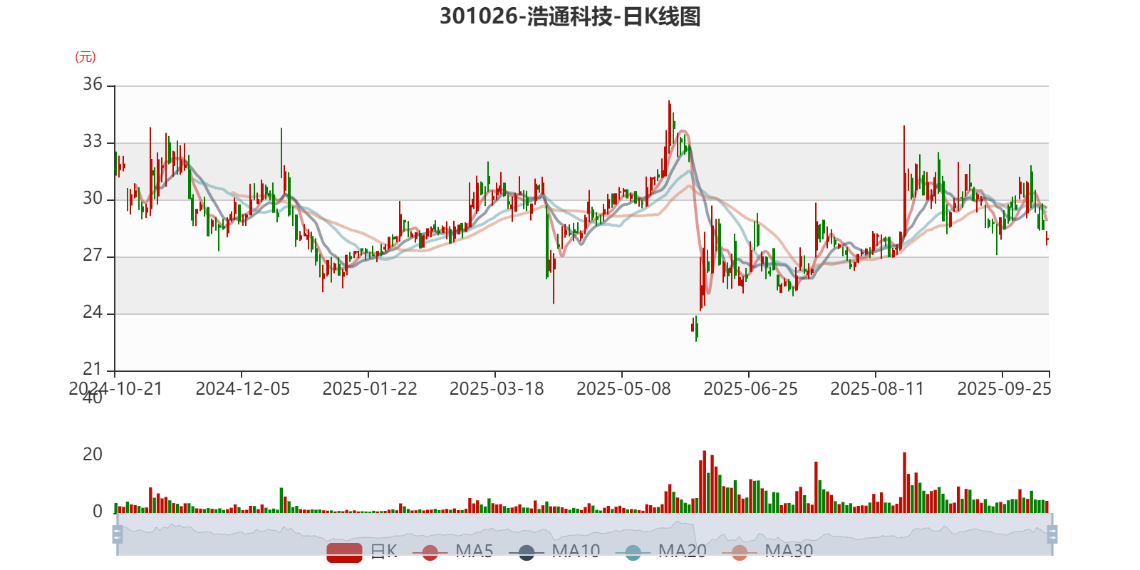 以10月20日收盘价计算,浩通科技目前市盈率(TTM)约为32.81倍,市净率(LF)约2.73倍,市销率(TTM)约1.66倍。