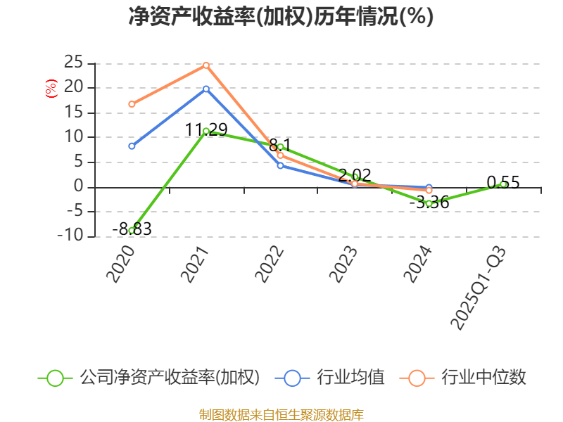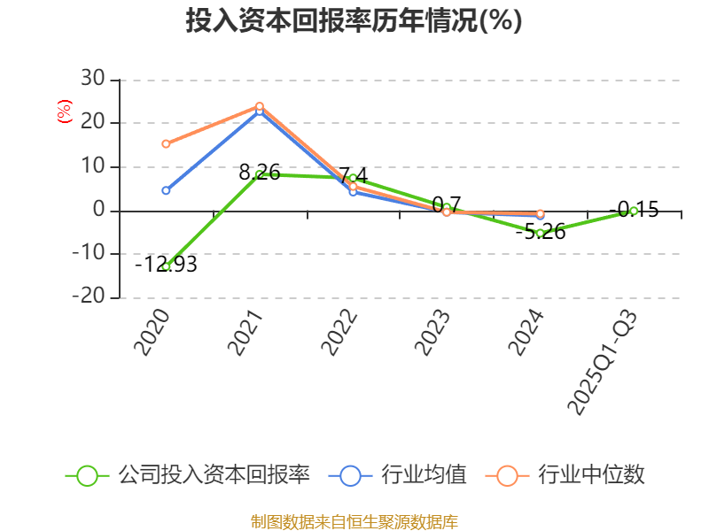 盈利能力方面, 2025年前三季度公司加权平均净资产收益率为0.55%,同比上升2.22个百分点。公司2025年前三季度投入资本回报率为-0.15%,较上年同期上升2.77个百分点。
