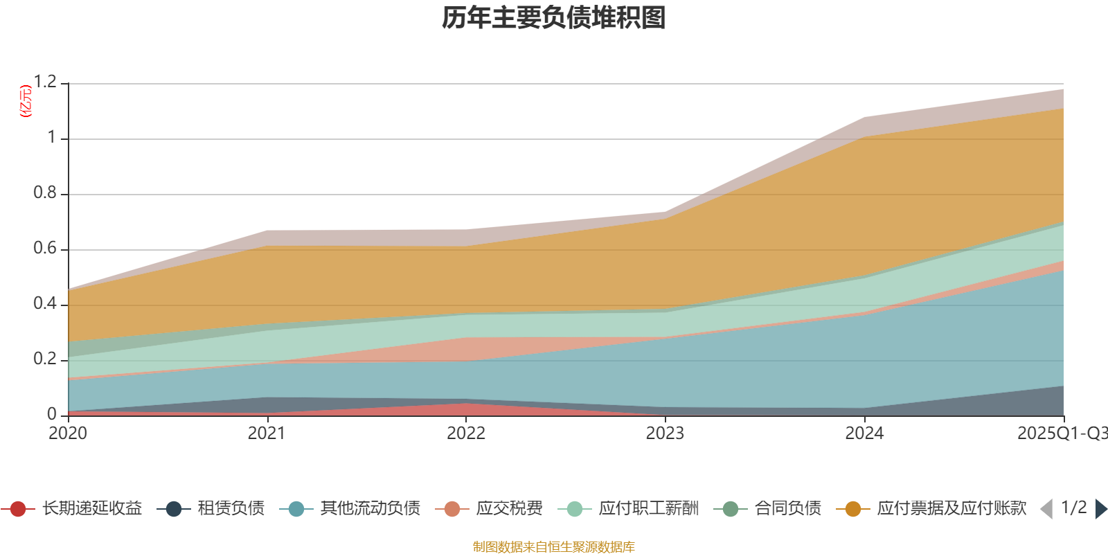 负债重大变化方面,截至2025年三季度末,公司其他流动负债较上年末增加24.6%,占公司总资产比重上升0.44个百分点;应付票据及应付账款较上年末减少18.22%,占公司总资产比重下降0.43个百分点;租赁负债较上年末增加289.16%,占公司总资产比重上升0.4个百分点;应交税费较上年末增加205.16%,占公司总资产比重上升0.12个百分点。