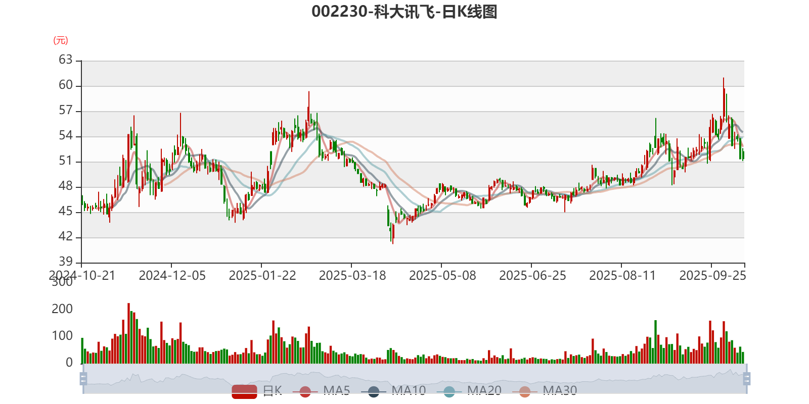 中证智能财讯科大讯飞(002230)10月21日披露2025年第三季度报告。前三季度公司实现营业总收入169.89亿元,同比增长14.41%;归母净利润亏损6667.54万元,上年同期亏损3.44亿元;扣非净利润亏损3.38亿元,上年同期亏损4.68亿元;经营活动产生的现金流量净额为1.23亿元,上年同期为-8.21亿元;报告期内,科大讯飞基本每股收益为-0.0288元,加权平均净资产收益率为-0.38%。